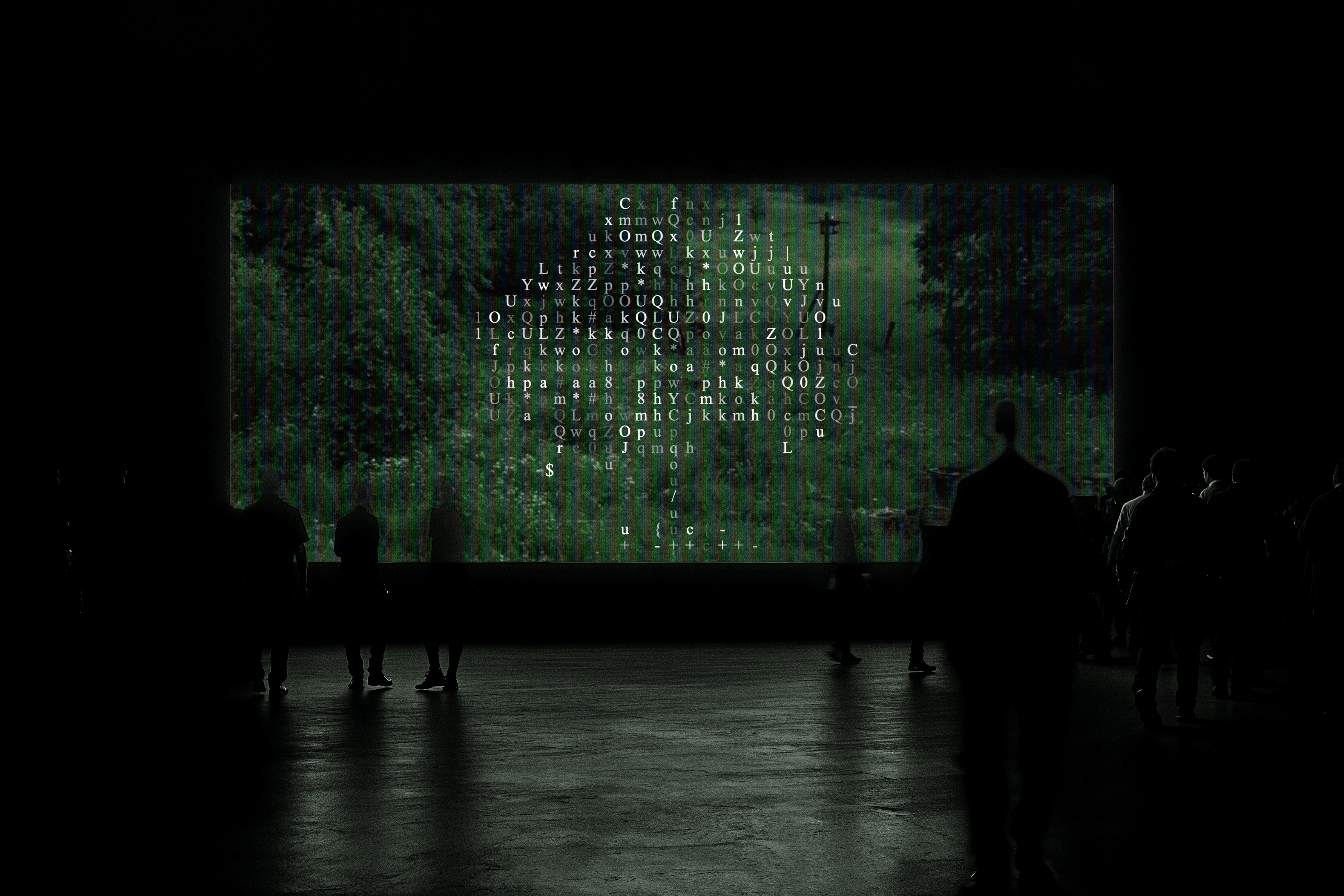 Fig 2. Generative Code is used to create the ASCII tree, which also spawned random characters over time. Tree looped over a scene of Stalkers. Song - walker
