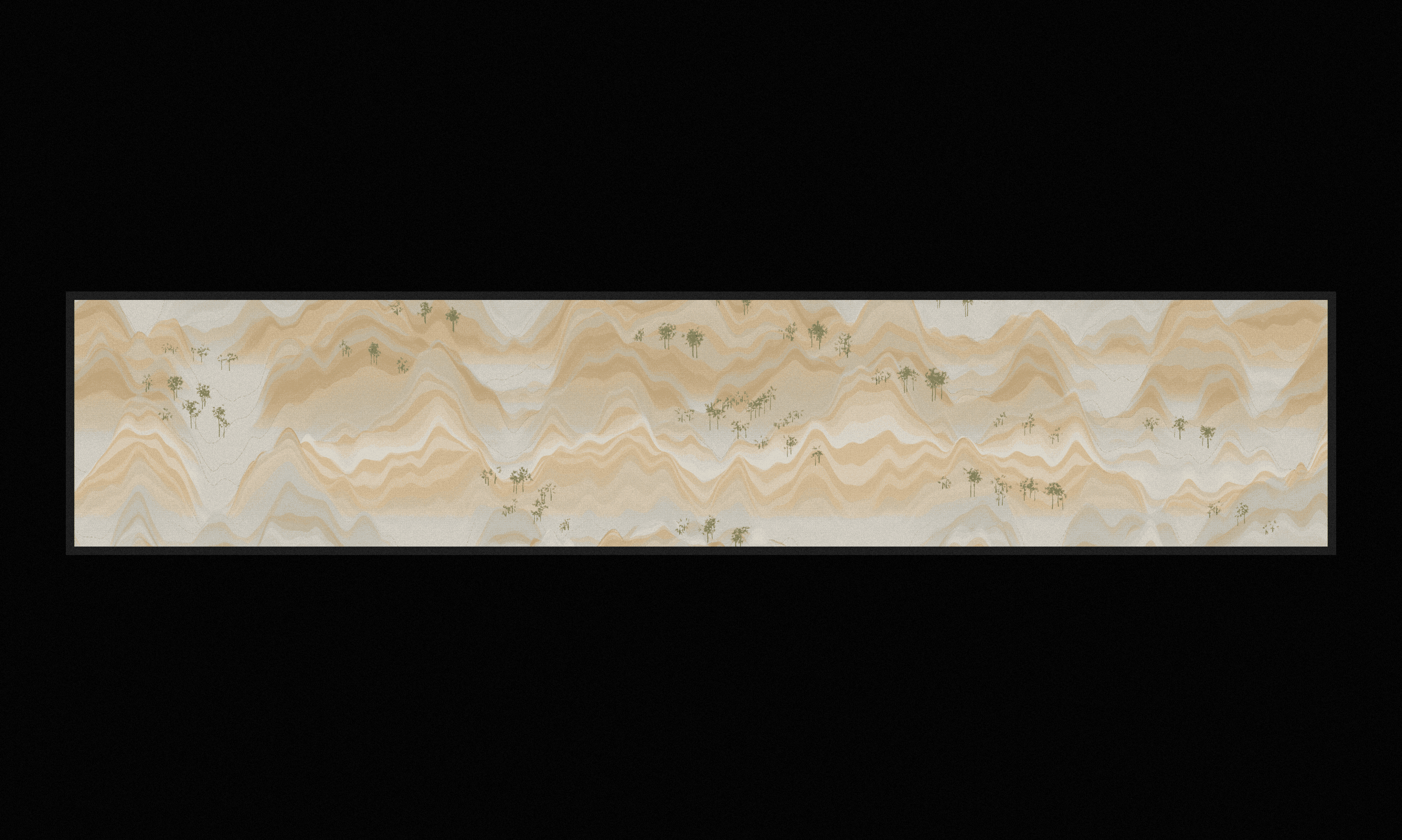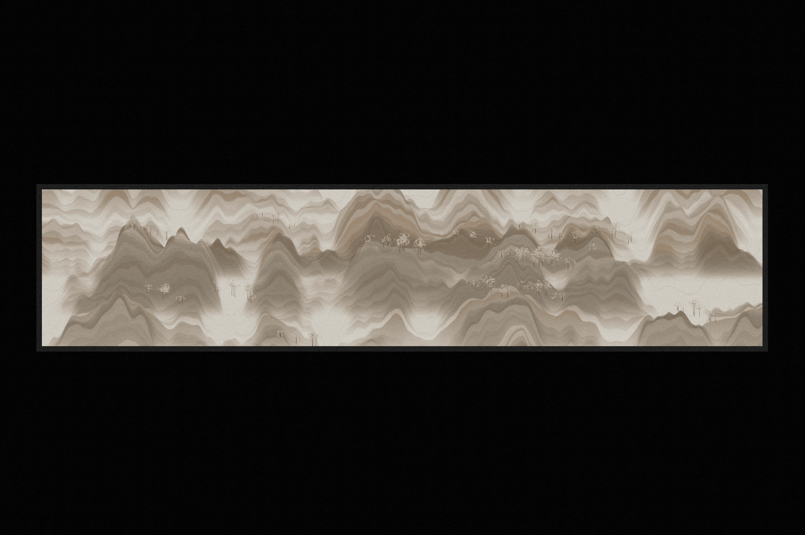Though these paitings weren't created with ink, they were born from meticulously written code. With a background in painting, they carry a sensitivity to traditional painting characteristics like tonality, suble texture, composition, lofty mountains, airy clouds, delicate trees etc... The code was written with a deep love and respect for my heritage and this art practice.