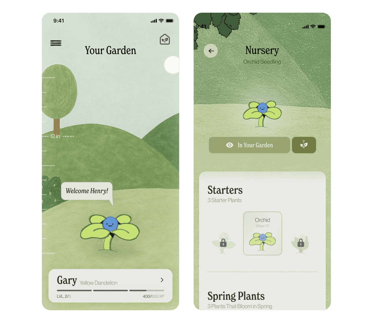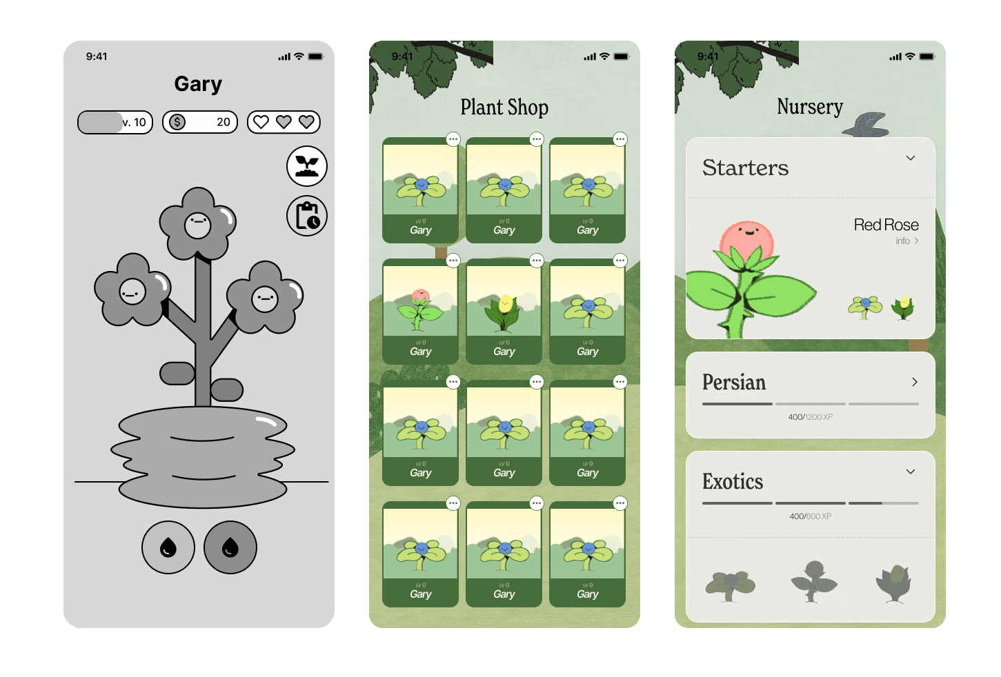 Fig 4. Static frames of Plant Garden and Nursery, where users can unlock new plant pets