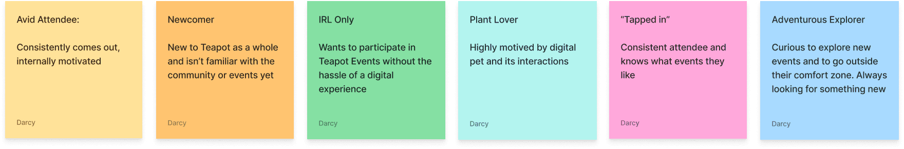 It’s not enough to research platforms and make assumptions. Rather than stopping at platform research and assumptions, I translated our findings into robust user personas that validated our direction and guided us toward solutions that genuinely empowered every Teapot Goer and targeted their underlying motivations.